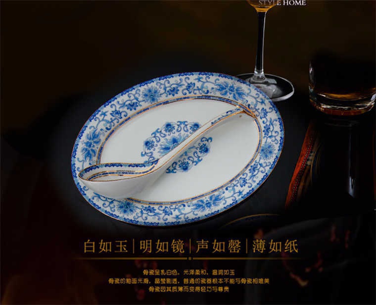 90頭青花餐具,一個宮廷湯煲,一個十二寸魚盤,一個10寸平盤,一個10寸月光盤,一個9寸平盤,一個9寸湯盤,四個8寸平盤,四個8寸湯盤,四個6寸高腳面碗,十個4.5寸飯碗,十個4寸湯碗,十個7.5寸淺盤,十個4寸小蝶,十個筷架,十個天鵝小勺,一個天鵝大勺,一個花籃,兩個胡椒瓶,一個牙簽筒,一個大煙灰缸,一個雙層水果盤,一個美鵝,一個毛巾碟,兩個燉盅。