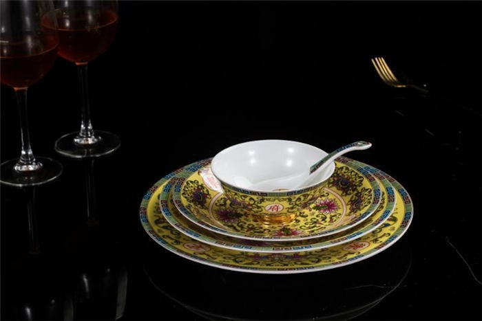 十個碗,7寸骨盤十塊,盤子十塊,小勺十個,筷子架十個,面碗四個,魚盤一個,大圓盤一塊,湯煲一個,合和器2套四塊,燉盅2套四個,果盤1套二個,大飯勺一個。